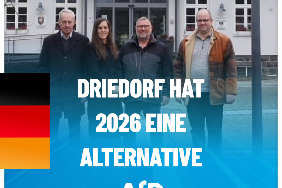 Seit wenigen Tagen steht die Driedorfer Liste der Alternative für Deutschland für die hessische Kommunalwahl am 15. März 2026. Sechs Personen aus der Mitte der Gesellschaft treten an, um den Driedorfer Bürgern eine Alternative zur… Driedorf hat 2026 eine Alternative